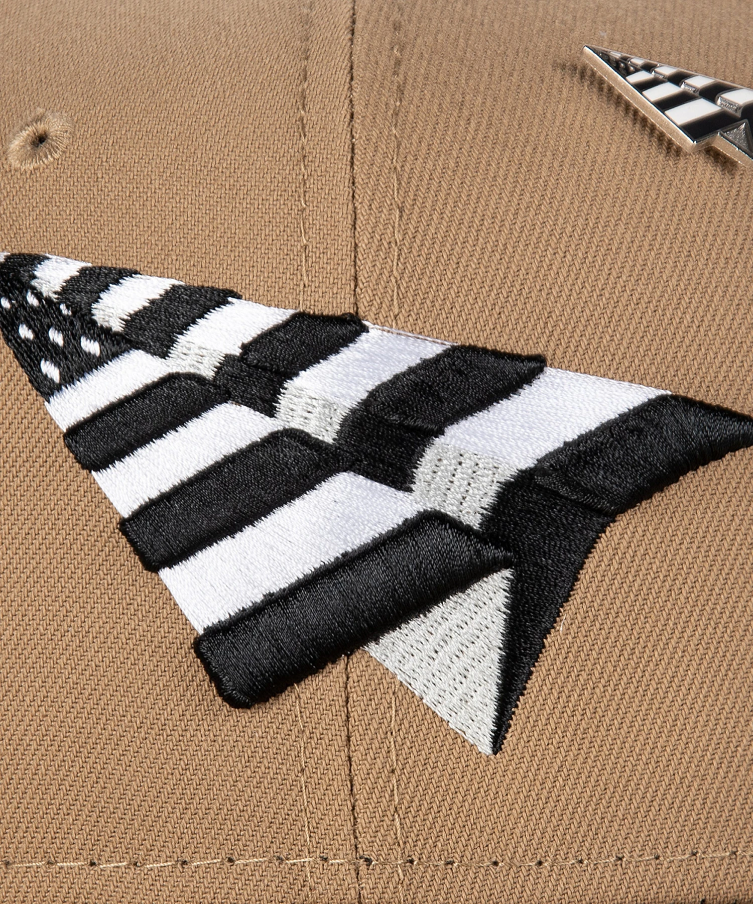 – EMBROIDERED PAPER PLANES LOGO IN BLACK, WHITE, AND GREY ON THE FRONT